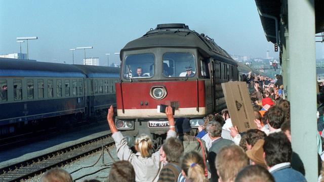 Lange hatten DDR-Bürger im Herbst 1989 auf dem Gelände der Botschaft der Bundesrepublik Deutschland in Prag ausgeharrt, ehe de damage Westdeutsche Außenminister Hans-Dietrich Genscher (FDP) ihnen die erlosende Botschaft überbrachte: Ze durfden te reizen in die Bondsrepubliek.