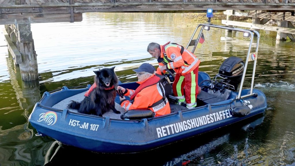 „Am Montag wurden wir um 11 Uhr von der Polizei alarmiert“, erinnert sich Silvio Rohde-Habermann, der das Suchboot auf dem See steuerte. Speziell ausgebildete Hunde und ihre Hundeführer suchten im Wasser nach Duftspuren. „Die Hunde schlugen in Ufernähe zu. Alle am selben Ort, obwohl ich den See von verschiedenen Seiten befuhr“, sagte Rohde-Habermann. Wichtig: Bei den Tieren handelt es sich nicht um sogenannte „Leichenspürhunde“, sondern um ausgebildete Flächensuchhunde mit Zusatzausbildung zum Wasserspürhund bzw. Wassersuchhund.