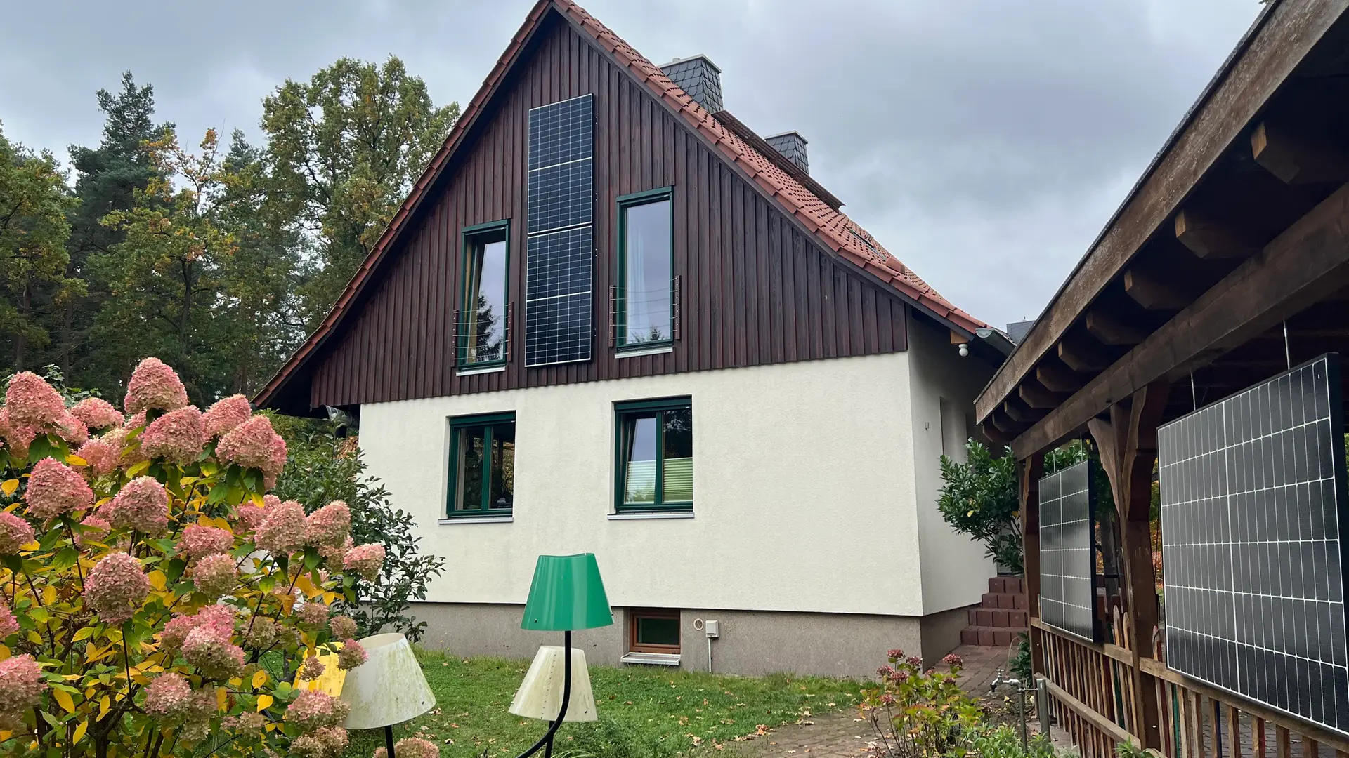 Der Vorbesitzer hatte das alte Gebäude im Jahr 2007 komplett renoviert. Die Familie Menzel kaufte das Haus vor 13 Jahren. Mehrere Photovoltaikanlagen auf Dach, Carport und Schuppen sorgen für den Strom, den das Haus automatisch verteilt. Waschmaschinen oder Elektroautos beziehen nur dann Strom, wenn genügend Energie vorhanden ist oder der Strom besonders günstig ist. Selbstverständlich ist Familie Menzel weiterhin an das normale Stromnetz angeschlossen. Im Winter kaufen sie gelegentlich auch zusätzliche Energie ein.