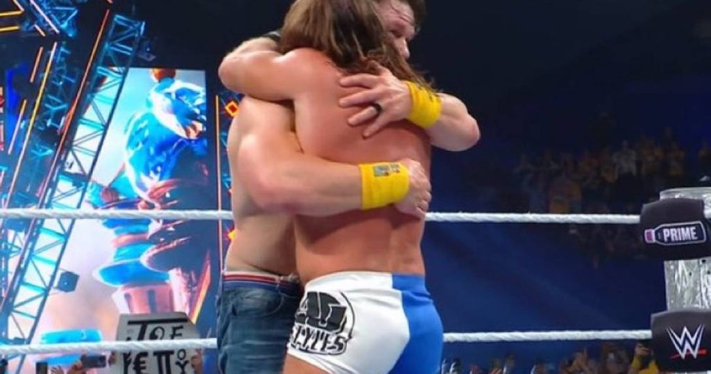 Anschließend erinnerten Cena und Styles mit ausgewählten Manövern im Ring an berühmte Gegner aus ihrer Vergangenheit. Cena zeigte unter anderem „Skull Crushing Finale“ von The Miz, „Accolade Submission Term“ von Rusev, „RKO“ von Randy Orton und „Walls of Jericho“ von Chris Jericho – was angesichts der anhaltenden Gerüchte, dass Jericho bald vom Konkurrenten AEW zurück zur WWE wechseln wird, noch auffälliger war.