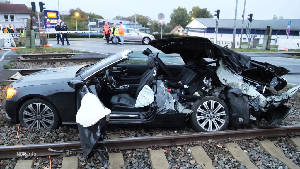 Auto am Bahnübergang in Osterholz-Scharmbeck von Zug erfasst (1 Min.)